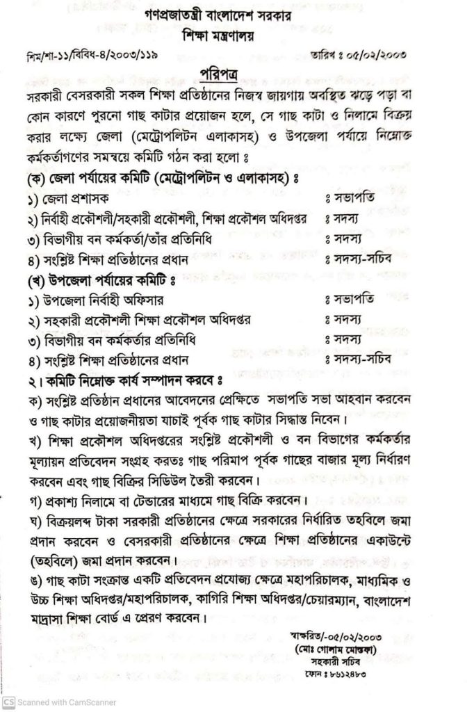 সরকারী বেসরকারী স্কুলের নিজস্ব জায়গায় অবস্থিত গাছ কাটা বা নিলামে বিক্রয় সংক্রান্ত কমিটি ও বিধান